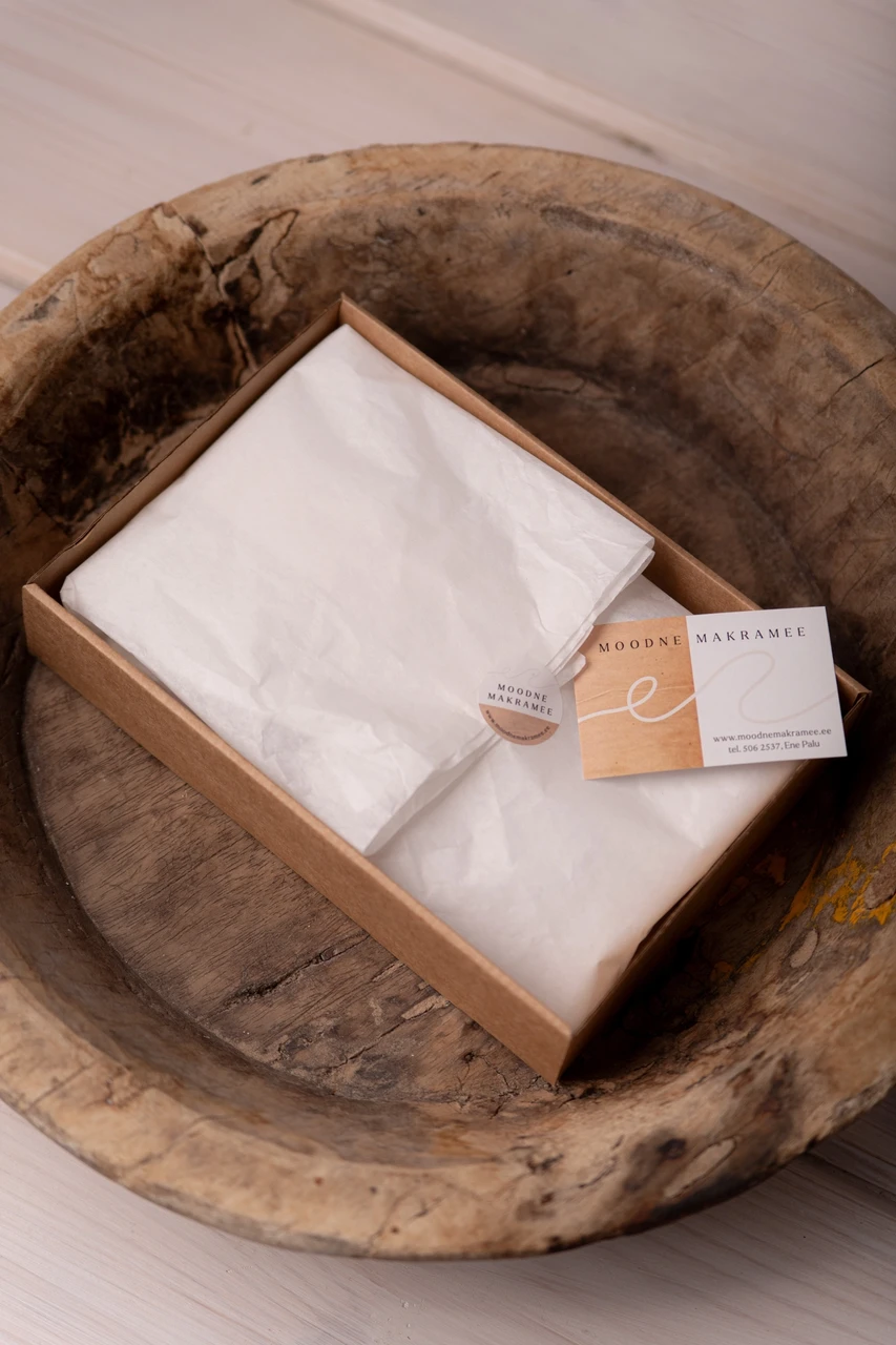 Selle kinkekaardi saab vahetada makrameetoote vastu. Kirjuta sõnumites soovitud kinkekaardi summa ja saadan Sulle arve ja kaardi postiga (või tule ise järele)